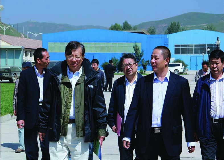 中國國際貿易促進委員會秘書長徐瀘濱(左二)在原甘南州商務局局長張明民,華羚集團董事長敏文祥(右二)的陪同下視察華羚公司