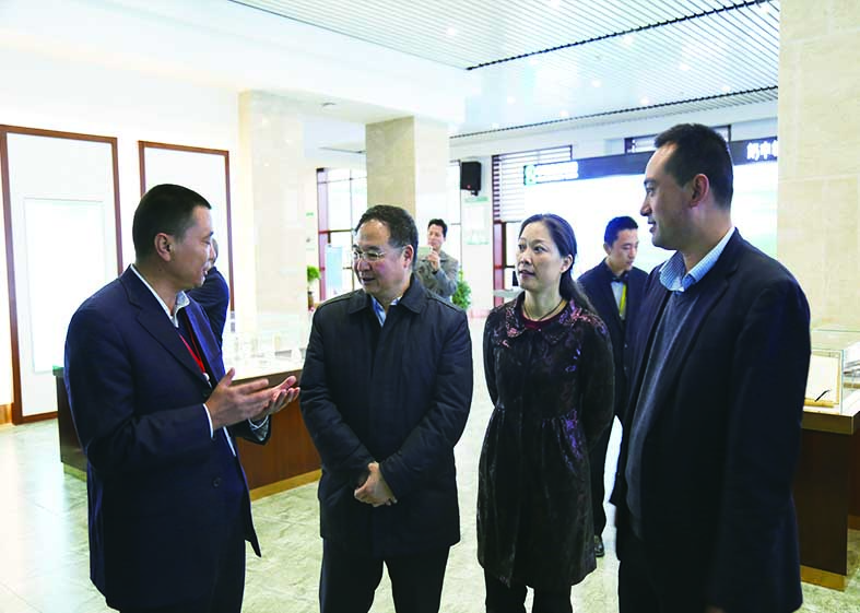 甘肅省科技廳黨組成員、副廳長傅小鋒(左二)在甘南州科技局局長王芳(右二)的陪同下視察華羚公司