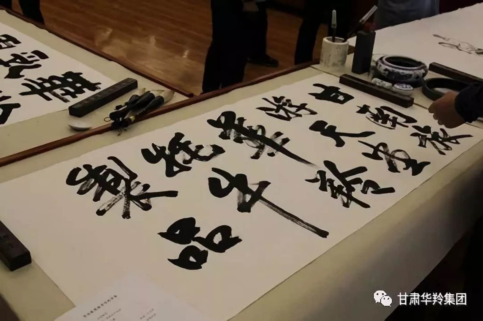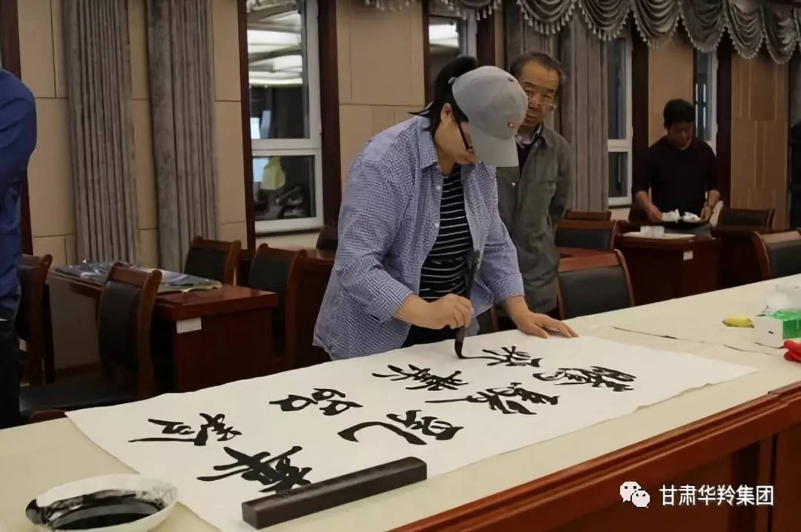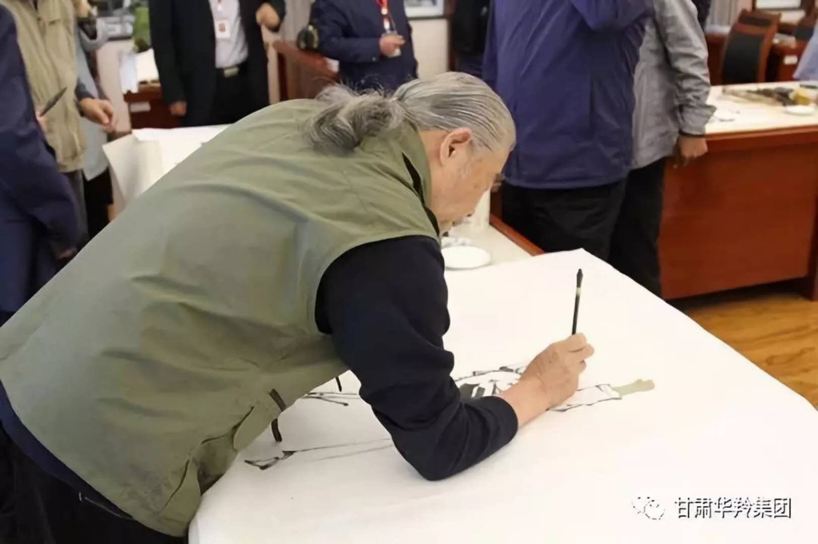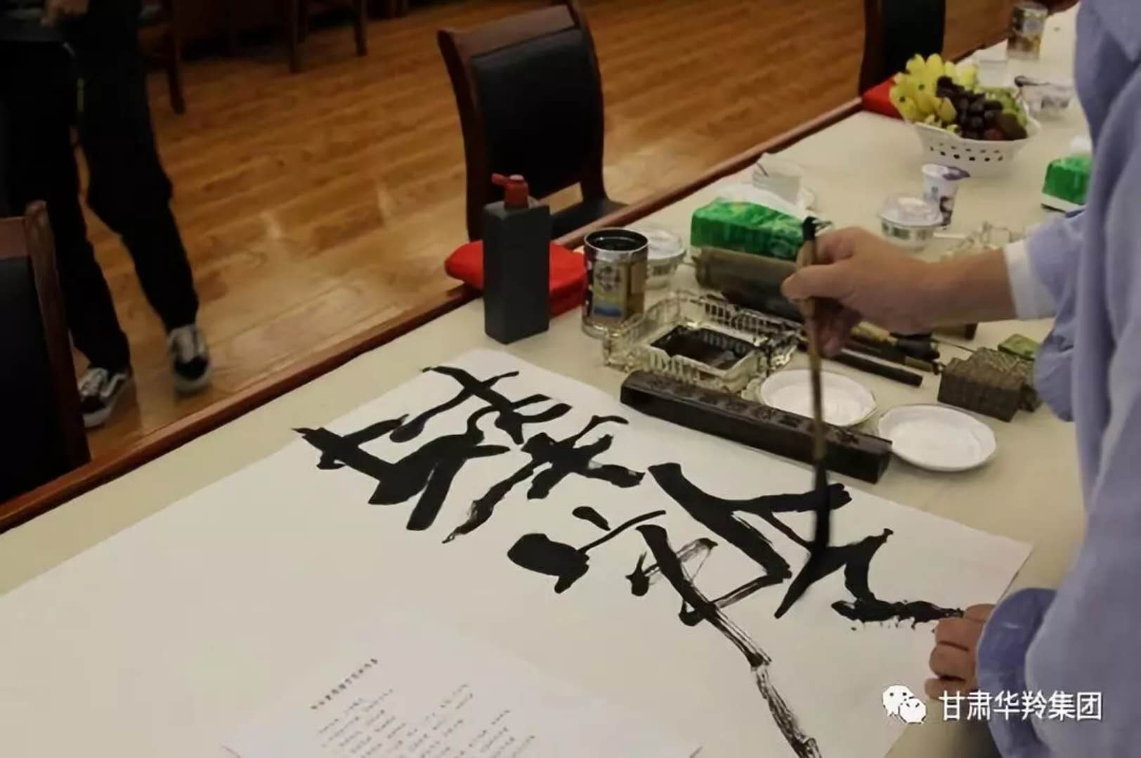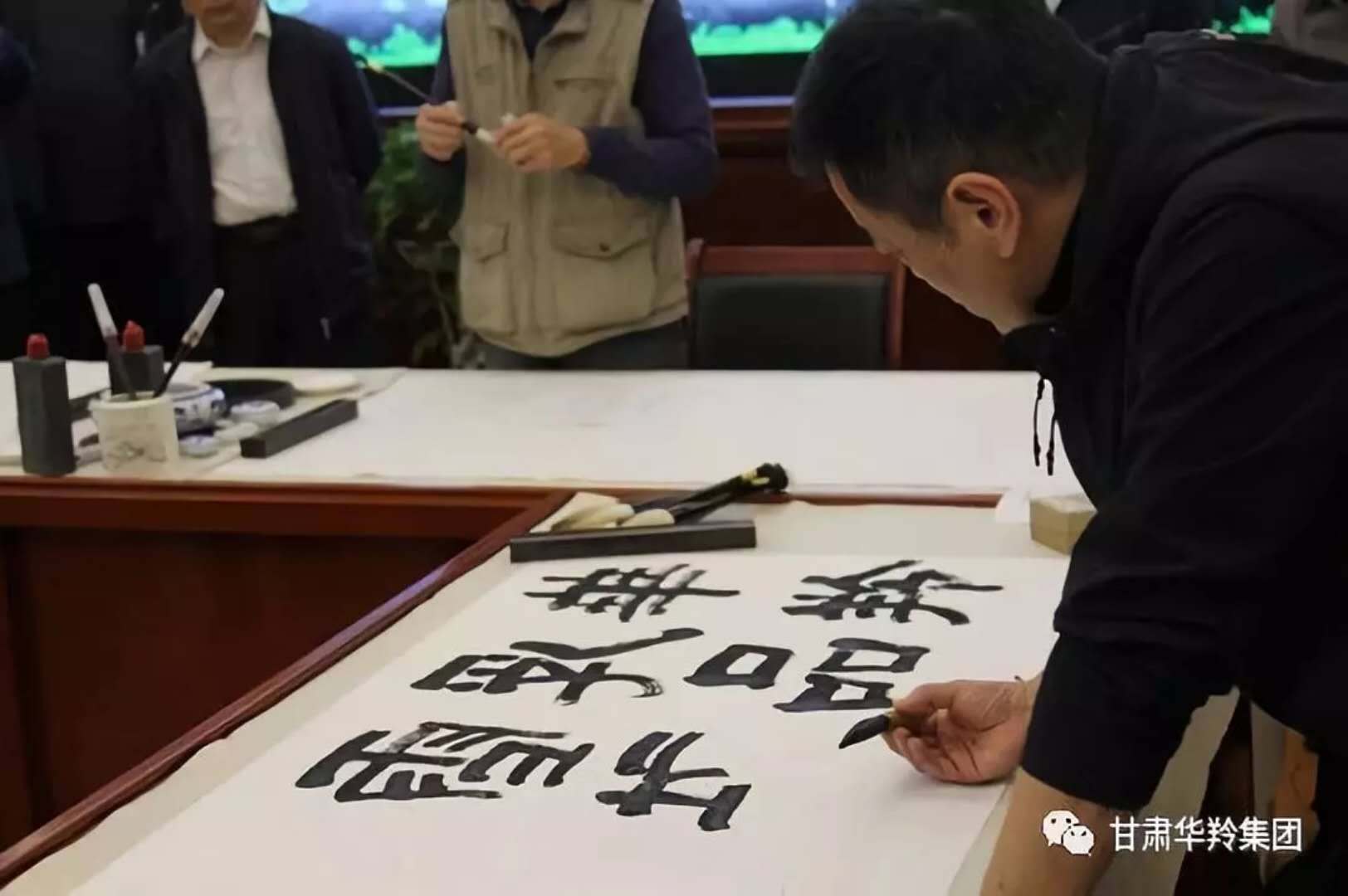 在華羚乳品公司四樓會(huì)議接待室,梅凱副院長(zhǎng),周明安委員,常銘主席等著名書畫家現(xiàn)場(chǎng)揮毫潑墨,場(chǎng)面熱鬧非凡,其樂融融。