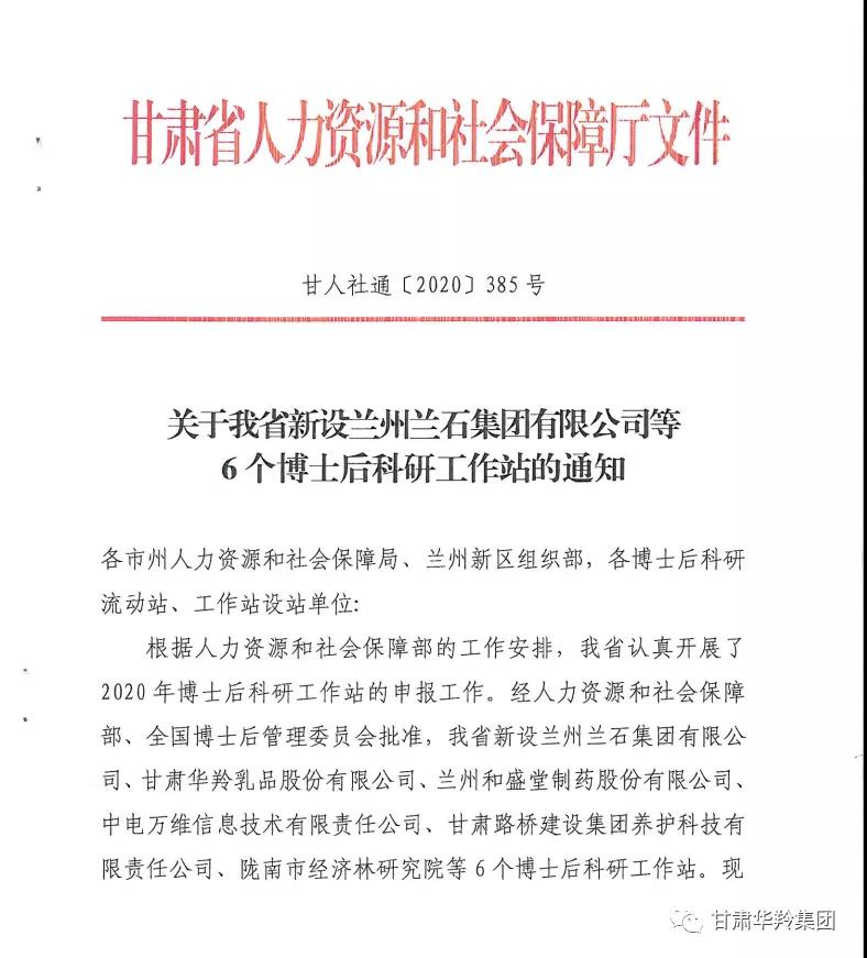 喜訊!甘肅華羚乳品股份有限公司獲批設立國家級博士后科研工作站