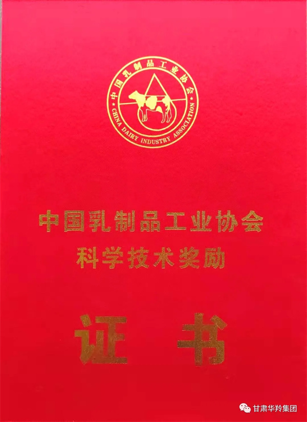 由甘肅華羚乳品股份有限公司研發團隊自主研發的曲拉制備高品質牦牛酪蛋白與活性肽蛋白粉關鍵技術及其產品開發項目經中國乳制品工業協會、國際乳品聯合會中國國家委員會聯合評審認定,在2021年度中國乳業科技系列獎項頒獎慶典上榮獲技術發明二等獎。
